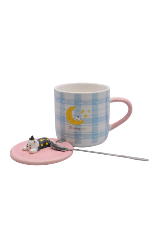 Sleepy cutie Hot Cup With Lid and tea Spoon